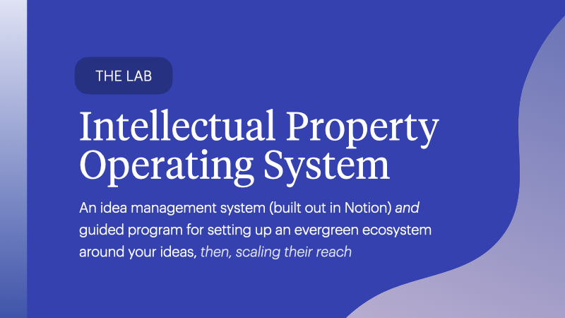This lab is a guided process (you can take a week, or you can take a month or more) and optional live experience to help you create a container that both protects your best ideas and puts them to work. You will create a thought leadership ecosystem to get you paid for your ideas, not your labor.